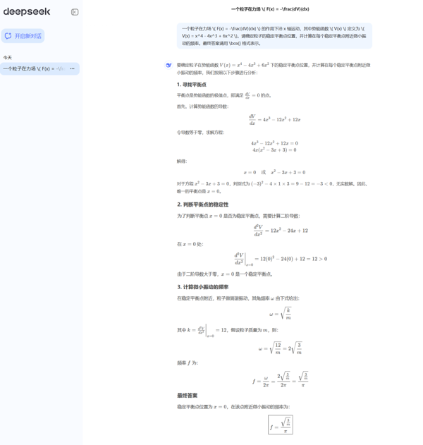 在“息壤”一體化智算平臺(tái)上部署的DeepSeek-R1模型,基于昇騰實(shí)例,實(shí)測(cè)一個(gè)涉及高等數(shù)學(xué)與物理學(xué)的復(fù)雜綜合問(wèn)題,該問(wèn)題不僅需要模型具備強(qiáng)大的數(shù)學(xué)推理能力,還要求其能夠理解并應(yīng)用物理學(xué)中的概念。