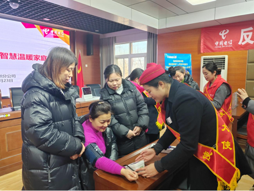 2024年1月23日,江蘇徐州電信青年團員來到中陽里街道古豐社區(qū),開展“文明點亮城市、青春志愿同行”主題志愿服務(wù)活動。廣大團員開展組織反詐專題講座,義務(wù)測量血壓、發(fā)放暖心飲品、宣講文明創(chuàng)建知識并發(fā)放春聯(lián),與市民共享冬日里的志愿服務(wù)暖陽,得到市民的一致好評。