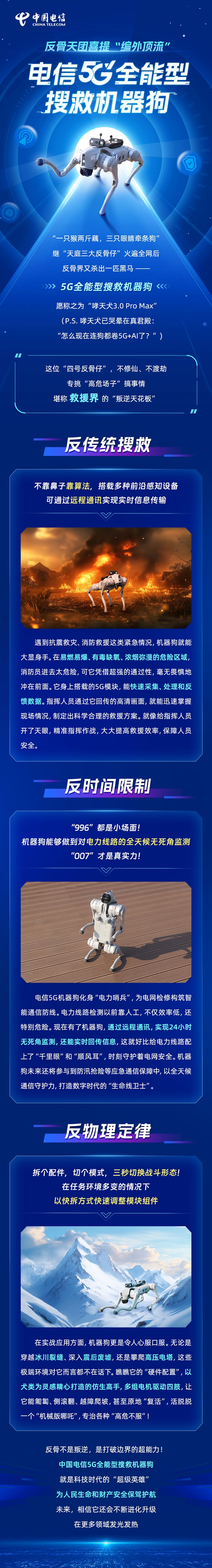反骨天團(tuán)喜提“編外頂流”,電信5G全能型搜救機(jī)器狗申請(qǐng)出戰(zhàn)!