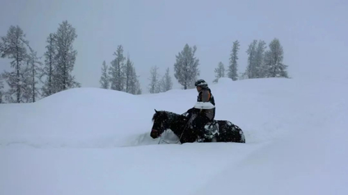至于為什么牽馬,卡里哈爾向記者介紹道:“雪太深了,如果騎馬,一直走,一直拱雪,馬會(huì)受不了。”禾木草原位于喀納斯河與禾木河交匯處的山間斷陷盆地中,群山環(huán)抱、森林茂密、地形復(fù)雜,氣候多變,冬季氣溫經(jīng)常低于零下30攝氏度,結(jié)冰期從10月一直到來(lái)年的4月。