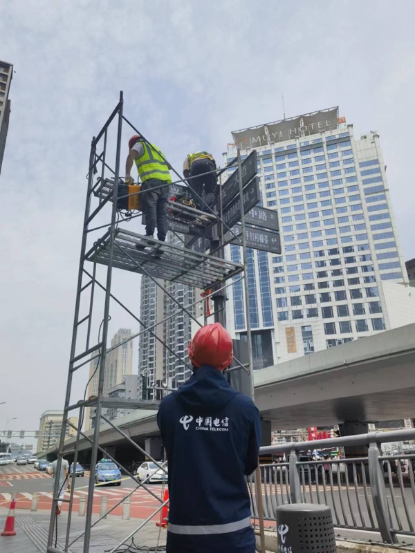 長(zhǎng)沙電信通信工程師在五一廣場(chǎng)調(diào)試新型設(shè)備