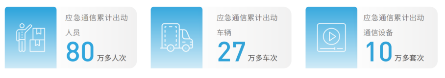 中國電信忠實履行保障通信安全暢通的使命,全力抗擊地震、臺風(fēng)、洪澇、山體滑坡等自然災(zāi)害,保障重大活 動。完成瀘定6.8級抗震救災(zāi)通信保障。完成浙江、福建、遼寧、廣東、廣西、甘肅等省份防汛防臺救災(zāi)保障。聚焦重點區(qū)域、協(xié)同聯(lián)動全網(wǎng),統(tǒng)籌線上線下,圓滿完成北京冬奧會、中國共產(chǎn)黨第二十次全國代表大會等11項重大 活動通信保障工作。2022年,應(yīng)急通信累計出動人員80萬多人次、車輛27萬多車次、通信設(shè)備10萬多套次。