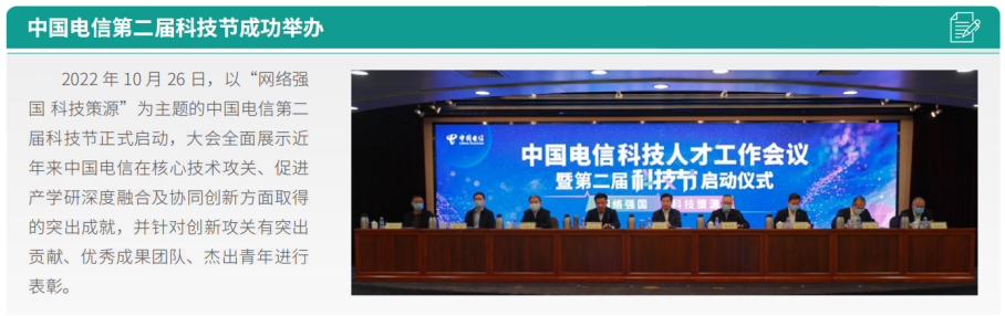 中國電信不斷完善科技創(chuàng)新體系,全面完成基礎(chǔ)研究 (RESEARCH,以下簡(jiǎn)稱R)、應(yīng)用技術(shù)研發(fā) (DEVELOPMENT,以下簡(jiǎn)稱D)和運(yùn)營式開發(fā)(OPERATION,以下簡(jiǎn)稱O)研發(fā)體系布局,建立產(chǎn)學(xué)研深度融合的創(chuàng)新體系,不斷增強(qiáng)自主創(chuàng)新能力,2022年被國務(wù)院國資委授予“科技創(chuàng)新突出貢獻(xiàn)企業(yè)”。在R領(lǐng)域,部署重點(diǎn)課題、創(chuàng)新 探索項(xiàng)目,扎根應(yīng)用基礎(chǔ)研究和前沿技術(shù)。在D領(lǐng)域,構(gòu)建內(nèi)部研發(fā)鏈,由鏈長(zhǎng)單位牽頭整合上下游,圍繞關(guān)鍵核心技術(shù)集中攻關(guān)。在O領(lǐng)域,優(yōu)化成果轉(zhuǎn)化流程,加大運(yùn)營開發(fā)人員轉(zhuǎn)型力度,推進(jìn)成果規(guī)模應(yīng)用。不斷優(yōu)化研發(fā)管理投入結(jié) 構(gòu),健全科研激勵(lì)機(jī)制。引進(jìn)拔尖人才,建立首席專家提名池,新聘和續(xù)聘首席專家15人,領(lǐng)銜重大攻關(guān)工程。制定技 術(shù)總師制,豐富科技創(chuàng)新專項(xiàng)榮譽(yù)獎(jiǎng)勵(lì),表彰取得重大創(chuàng)新成果的個(gè)人和團(tuán)隊(duì)??萍紕?chuàng)新組織體系化,營造良好科技創(chuàng)新 氛圍,打造科創(chuàng)宣傳名片,在中國電信科學(xué)技術(shù)協(xié)會(huì)的帶領(lǐng)下,45個(gè)中國電信科學(xué)技術(shù)協(xié)會(huì)分會(huì)已組建成立。成功舉辦 中國電信第二屆科技節(jié),入選全國科普日活動(dòng)優(yōu)秀組織單位。