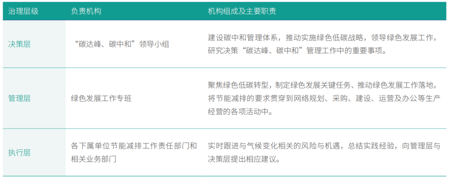 中國電信制定《中國電信碳達(dá)峰行動(dòng)方案》和《中國電信2022年“碳達(dá)峰、碳中和”工作要求和考核辦法》,明確應(yīng)對(duì)氣候變化工作的管理架構(gòu)和各部門職責(zé),提出中國電信應(yīng)對(duì)氣候變化、實(shí)現(xiàn)碳達(dá)峰碳中和的目標(biāo)、行動(dòng)計(jì)劃及具體舉措。