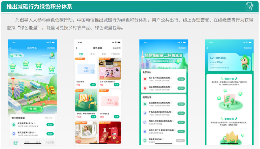 中國電信積極響應(yīng)國家“雙碳”戰(zhàn)略目標(biāo)和行業(yè)綠色低碳要求,加速能效水平和管理能力雙提升,加快能源結(jié)構(gòu)和產(chǎn)品賦能雙轉(zhuǎn)型,綠色低碳發(fā)展取得明顯突破。