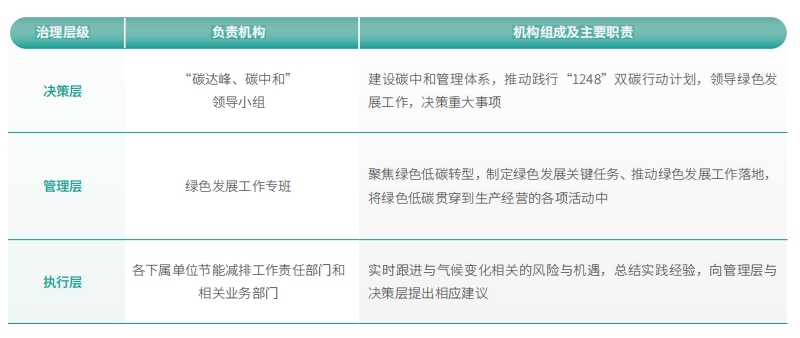中國電信在“碳達(dá)峰、碳中和”工作領(lǐng)導(dǎo)小組帶領(lǐng)下,由董事長擔(dān)任領(lǐng)導(dǎo)小組組長,負(fù)責(zé)領(lǐng)導(dǎo)小組日常工作,推動中國電信落實綠色低碳戰(zhàn)略。中國電信設(shè)置了決策層、管理層和執(zhí)行層三層治理結(jié)構(gòu),推動落實綠色低碳發(fā)展。