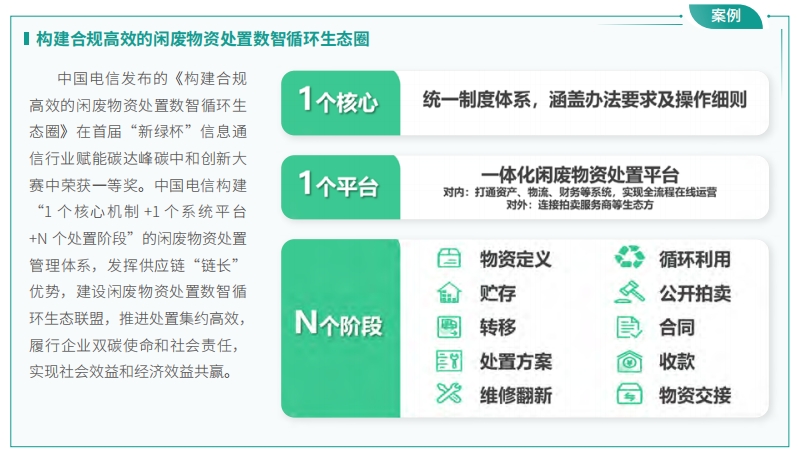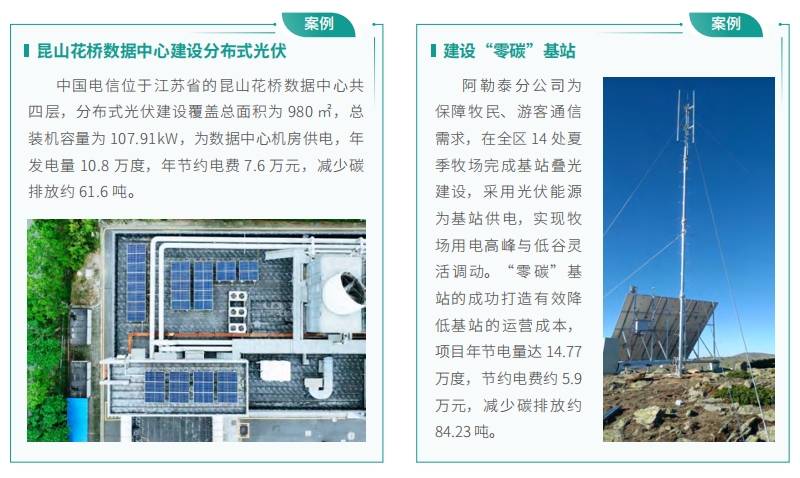 中國電信以“1248”雙碳行動計劃為指引,推進綠色云網(wǎng)、綠色用能、綠色辦公、循環(huán)利用、綠色科創(chuàng)和綠色管理等領(lǐng)域工作,不斷挖掘自身降碳潛能。