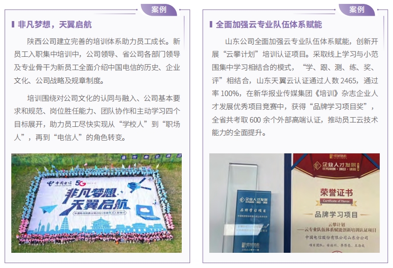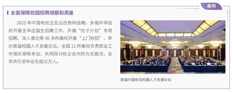 中國電信堅持人才是第一資源,發(fā)布人才強(qiáng)企工程實(shí)施方案,確立人才規(guī)劃目標(biāo),繪制人才圖譜,全方位培養(yǎng)、引進(jìn)、用好人才。