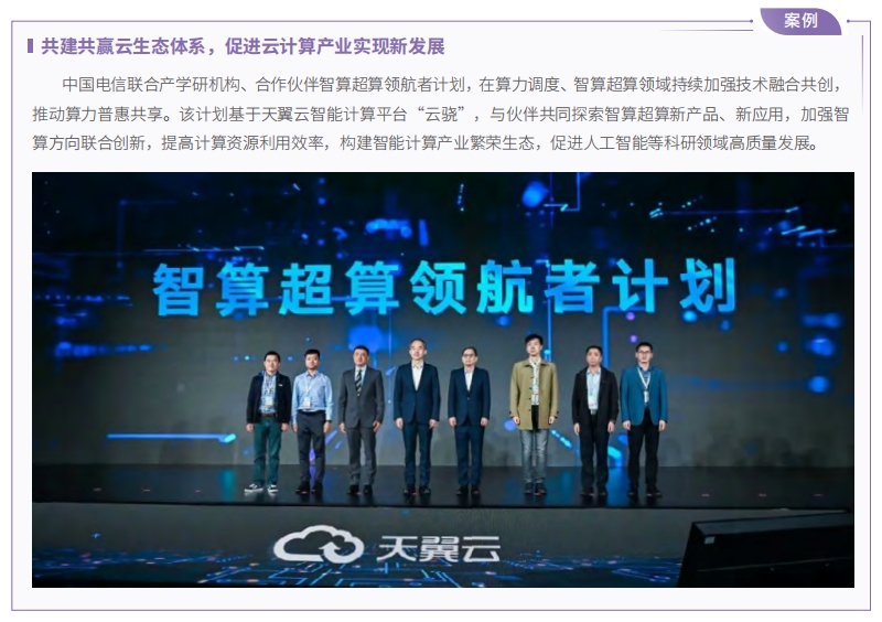 在第六屆數(shù)字中國建設(shè)峰會·云生態(tài)大會上啟動天翼云算力分發(fā)網(wǎng)絡(luò)平臺“息壤”生態(tài)合作計劃、智算超算領(lǐng)航者計劃、央企 SaaS(Software as a Service,軟件即服務(wù) ) 生態(tài)共同體計劃,并為最佳實(shí)踐合作伙伴、最具潛力合作伙伴授牌,攜手伙伴筑牢數(shù)字中國建設(shè)的國云底座。