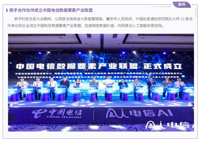 中國電信積極探索“云網(wǎng)智”融合技術(shù),以“網(wǎng)絡(luò) + 云計算 +AI+ 應(yīng)用”模式,助力政府、企業(yè)加快數(shù)字化轉(zhuǎn)型升級。數(shù)字科技生態(tài)大會作為展現(xiàn)數(shù)字科技發(fā)展成果及與各界共同探索發(fā)展方向的重要平臺,全方位展現(xiàn)公司及生態(tài)合作伙伴在云網(wǎng)融合基礎(chǔ)能力、數(shù)字新消費(fèi)、產(chǎn)業(yè)數(shù)字化、智能電子、人工智能大模型等方面的最新成果,積極發(fā)揮產(chǎn)業(yè)協(xié)同效應(yīng),建設(shè)產(chǎn)業(yè)聯(lián)盟,以生態(tài)繁榮開創(chuàng)數(shù)字科技建設(shè)新局面。