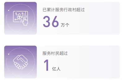 中國電信將數(shù)字鄉(xiāng)村建設(shè)作為深化行業(yè)幫扶、定點(diǎn)幫扶的重要舉措,打造數(shù)字賦能鄉(xiāng)村振興樣板。數(shù)字鄉(xiāng)村平臺融合視聯(lián)網(wǎng) +AI+ 天翼云播三大核心能力,面向區(qū)縣、鄉(xiāng)鎮(zhèn)、行政村等政府和村民,提供便民服務(wù)、積分銀行等信息化服務(wù),以及農(nóng)村養(yǎng)老、消防安全、智慧種植等數(shù)字化場景服務(wù),實(shí)現(xiàn)鄉(xiāng)村基層治理和農(nóng)民生產(chǎn)生活智能化,已累計服務(wù)超過 36 萬個行政村,服務(wù)村民超過 1 億人。