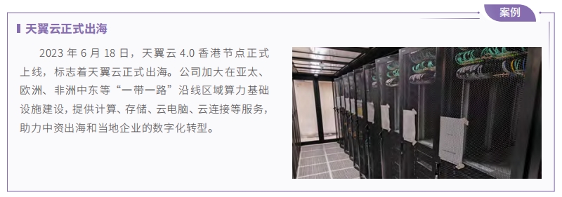 中國電信大力推進(jìn)天翼云國際化,打造覆蓋全球主要熱點(diǎn)區(qū)域高速互聯(lián)智能云網(wǎng)體系,與全球主流公有云多節(jié)點(diǎn)高速互聯(lián)。憑借專業(yè)的信息服務(wù)能力和云網(wǎng)融合技術(shù)優(yōu)勢,匹配海外當(dāng)?shù)財?shù)字化應(yīng)用場景,融入智慧系列方案,助力海外客戶數(shù)字化轉(zhuǎn)型升級,為當(dāng)?shù)財?shù)字經(jīng)濟(jì)建設(shè)、社會進(jìn)步及民生改善作出積極貢獻(xiàn)。