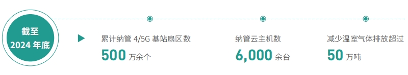 持續(xù)推進 AI 節(jié)能,充分利用云網(wǎng)融合優(yōu)勢,基于 AI 算法、大數(shù)據(jù)處理、邊緣計算等能力,自主研發(fā)了全國一體化、云邊協(xié)同的云網(wǎng)基礎(chǔ)設(shè)施智慧節(jié)能平臺,實現(xiàn)對 4/5G 基站、通信機房和數(shù)據(jù)中心、云主機的精準(zhǔn)節(jié)能。截至 2024 年底,累計納管 4/5G 基站扇區(qū)數(shù) 500 萬余個、機房數(shù) 3,200 余個、納管云主機數(shù) 6,000 余臺,累計節(jié)電量超過 9 億度,減少溫室氣體排放超過 50 萬噸。