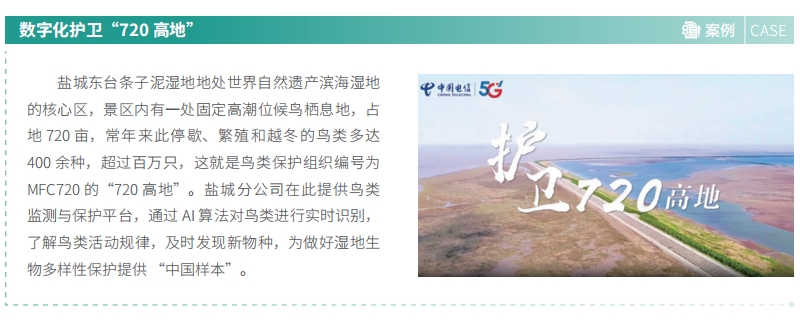 中國電信充分發(fā)揮云計算、大數(shù)據(jù)、物聯(lián)網(wǎng)、人工智能、區(qū)塊鏈等新一代數(shù)字技術(shù)優(yōu)勢,構(gòu)建智能綠色的解決方案,助力千行百業(yè)綠色轉(zhuǎn)型,促進人與自然和諧共生。