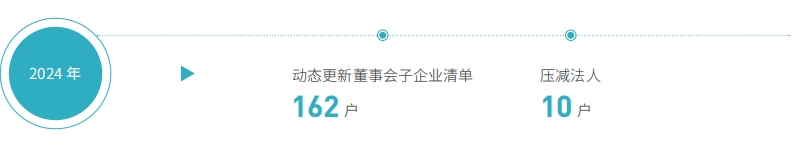 推進(jìn)法人子企業(yè)壓減和虧損治理。制定《2024 年虧損子企業(yè)治理工作方案》,非戰(zhàn)新類(lèi)虧損額和虧損戶(hù)數(shù)雙下降超10%。圍繞法人全生命周期管理,形成“四個(gè)管理、四個(gè)確保”法人治理工作體系,2024 年壓減 10 戶(hù)法人,同時(shí),圍繞低空經(jīng)濟(jì)、衛(wèi)星領(lǐng)域、智算等戰(zhàn)新領(lǐng)域新設(shè) 10 戶(hù)法人。法人壓減工作在 2023 年央企專(zhuān)項(xiàng)考核中再次并列第1。