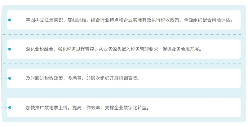 中國(guó)電信嚴(yán)格遵守稅收法律法規(guī),依法納稅,誠(chéng)信經(jīng)營(yíng),強(qiáng)化稅務(wù)風(fēng)險(xiǎn)管理,確保公司稅務(wù)管理高效合規(guī)。