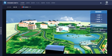 圖為“綠色校園能耗大數(shù)據(jù)平臺”實現(xiàn)校園內(nèi)部 3D 可視化展示