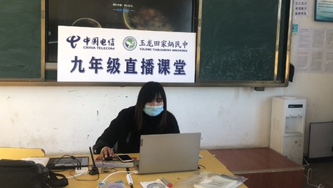 云南公司搭建免費在線多元化的“天翼云課堂”平臺,滿足疫情期間學(xué)生學(xué)習(xí)需求。圖為 2020 年 3 月 2 日,云南省麗江市玉龍納西自治縣田家炳民中英語老師在教室使用“天翼云課堂”平臺授課