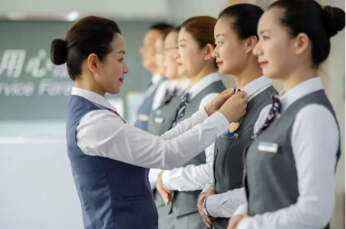 圖為邱莉娜作為客戶(hù)服務(wù)專(zhuān)家?guī)Ы谭?wù)禮儀