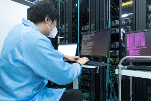 跟著劉博士的腳踏車,記者來到了實驗機房。轟鳴的噪聲和機架的熱浪中,研發(fā)人員鄭超正在緊張工作,他指向一排機柜說:“這是一個全閃存儲項目,正在進行上線前的業(yè)務(wù)測試?!睋?jù)介紹,依托中國電信研究院實驗環(huán)境,云網(wǎng)融合大科學(xué)裝置提供了天翼云仿真適配平臺和業(yè)界首個NFV三層解耦網(wǎng)絡(luò)云實驗平臺,能夠開展5GC解耦測試、信創(chuàng)云適配、云計算新技術(shù)研究等大規(guī)模仿真驗證實驗。