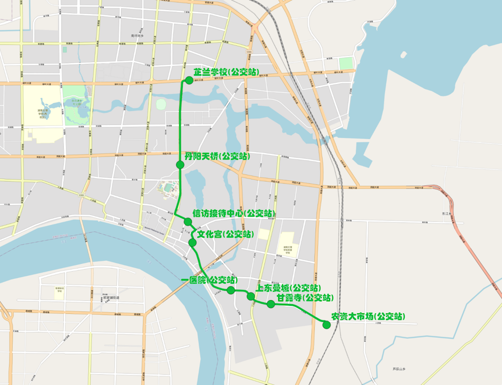 市六中3號(hào)線:荷塘月色—新華書店—新河路農(nóng)貿(mào)市場(chǎng)—首創(chuàng)名苑—恒大華府北—農(nóng)業(yè)發(fā)展銀行—紫橋小區(qū)—丹陽路口(丹陽路)—丹陽路口(洞庭大道)—市六中