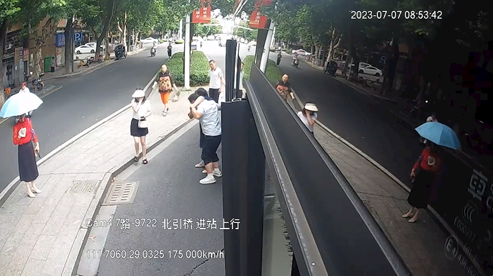 7月7日上午,一名乘客在公交站臺上突發(fā)暈倒,公交駕駛員見狀立即伸出援手,乘客被及時被送往醫(yī)院。