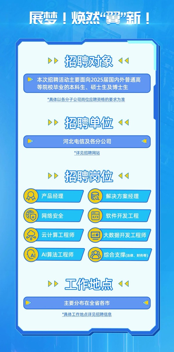 中國電信河北公司2025秋季校園招聘啟動!