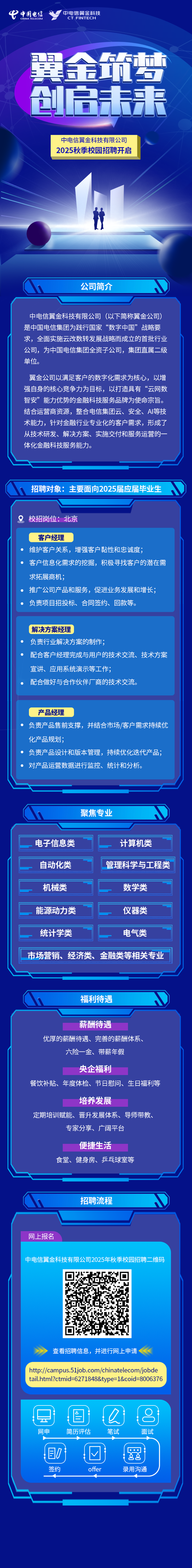 中國電信翼金公司2025校園招聘火熱進(jìn)行中!