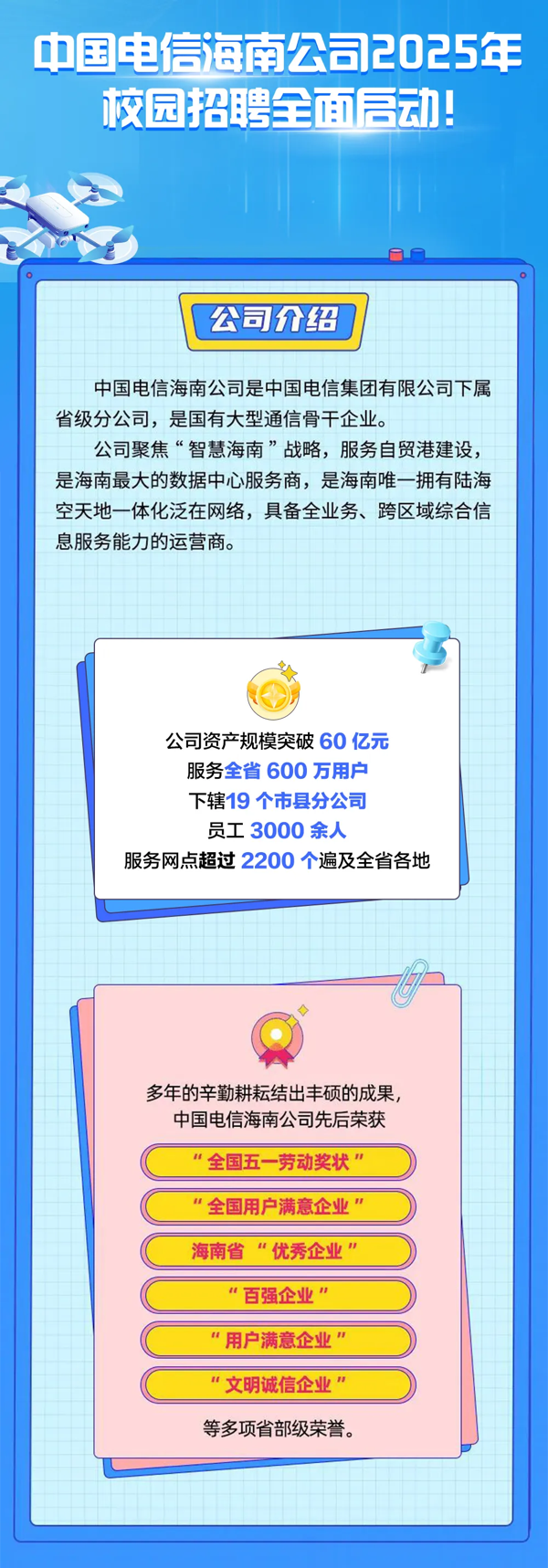 中國(guó)電信海南公司2025年校園招聘全面啟動(dòng)!